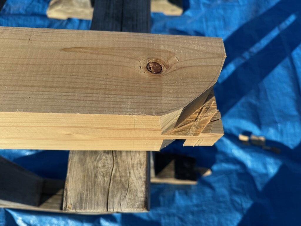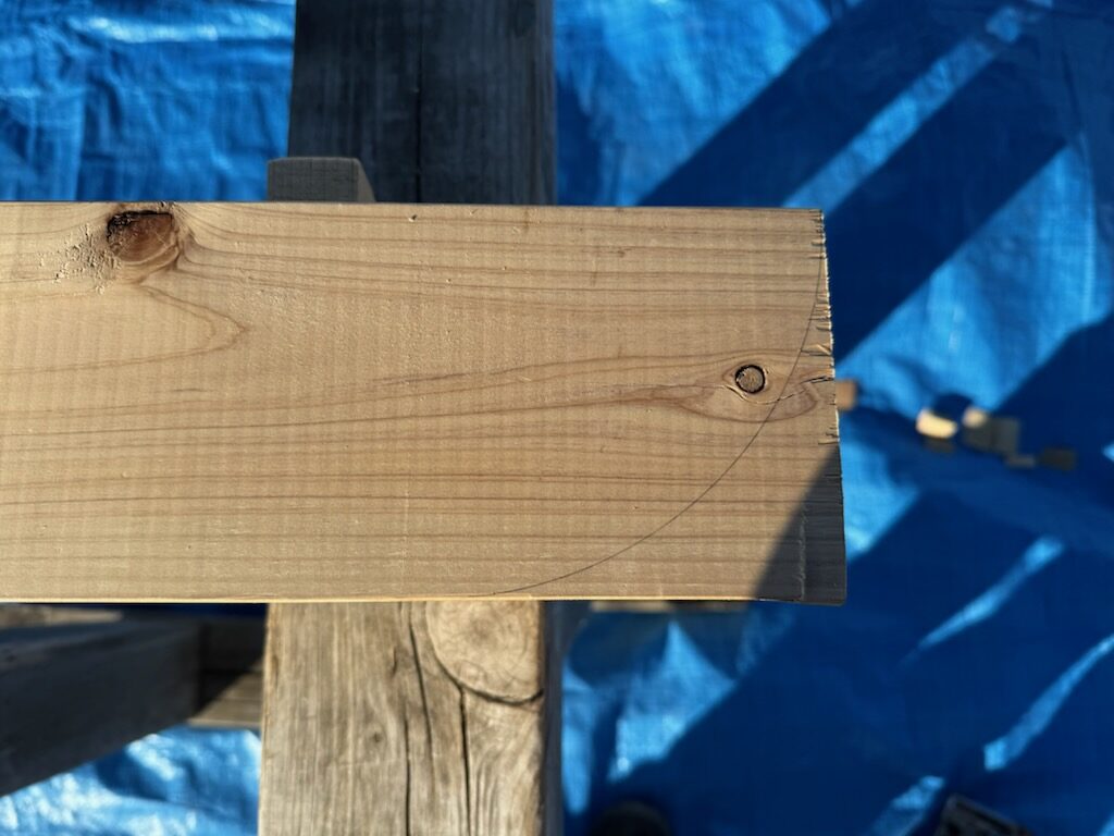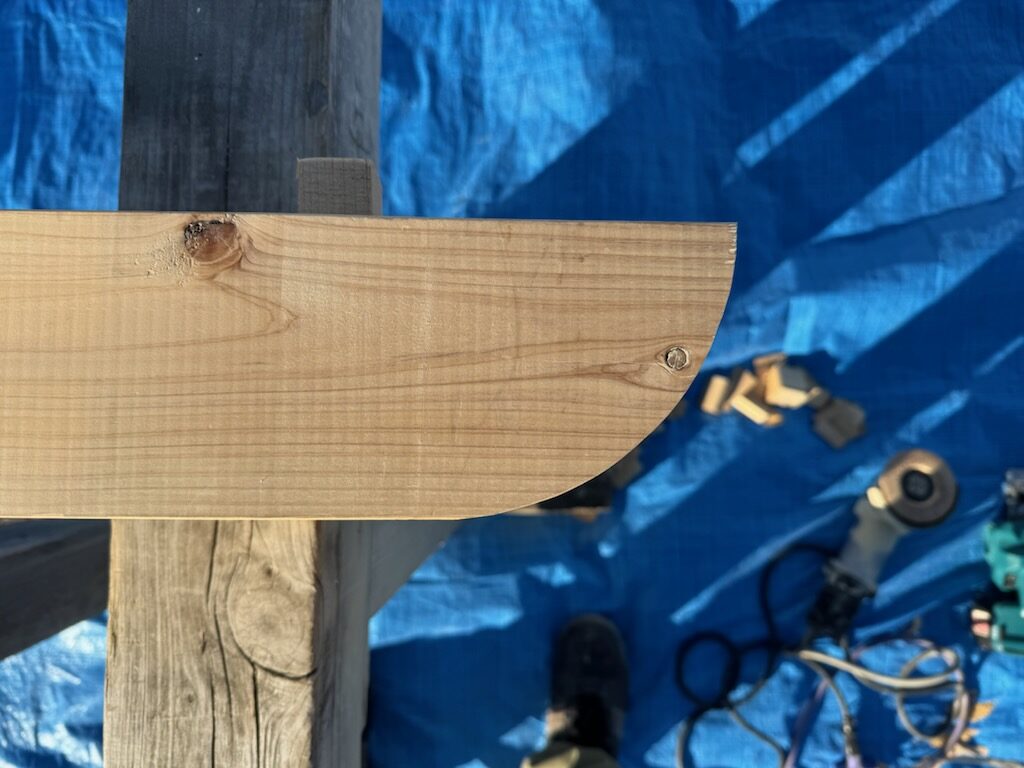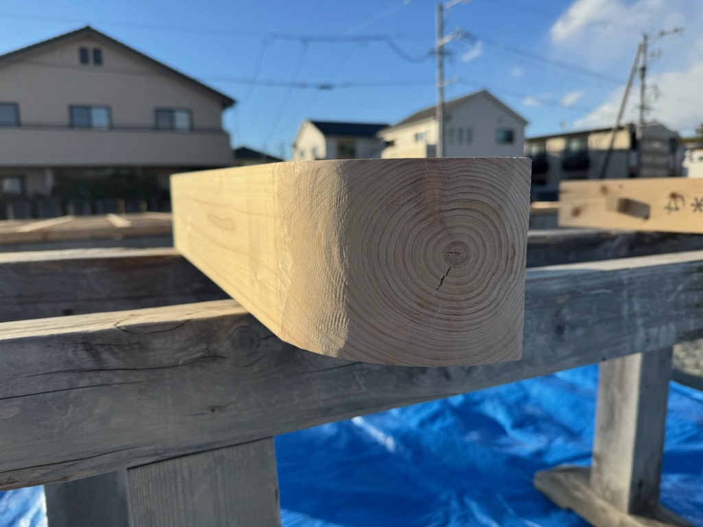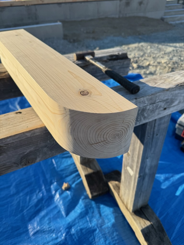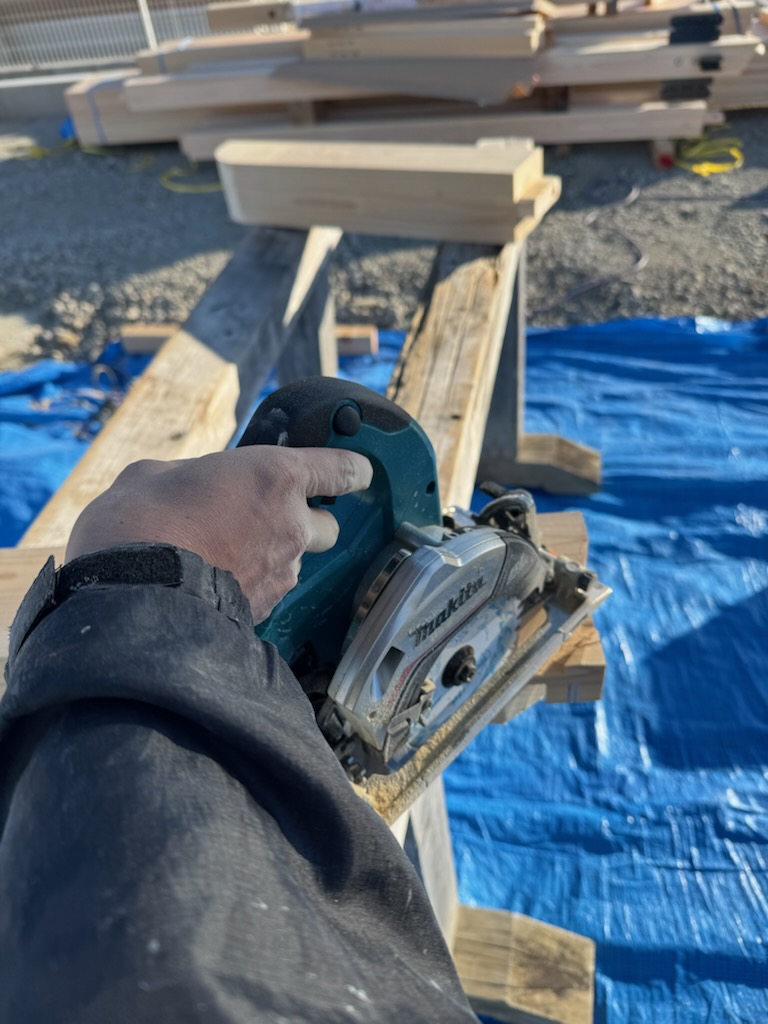 現場にて、上棟に先立ち加工を行いました!