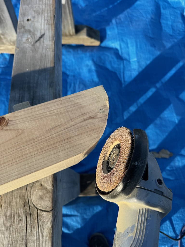このグラインダーという機械で、木部を削っていきます。