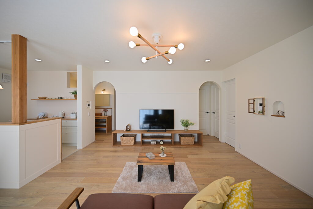 フローリングが、明るいため室内が広く明るく感じます。