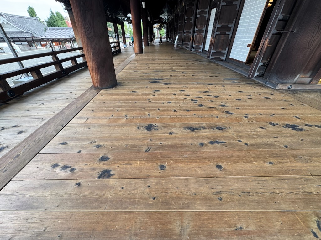 東本願寺の床は、大きな出入口に直交した方向に張っていました。