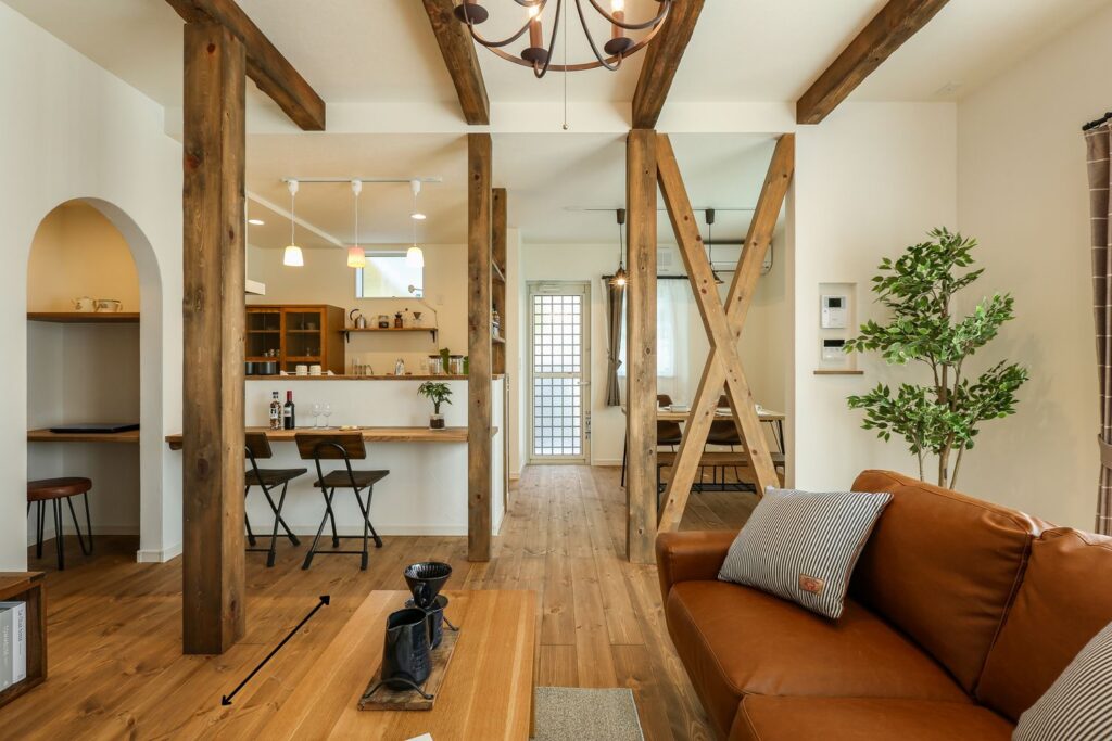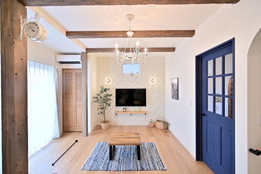 この張り方における効果は、室内から見た時に奥行感を感じられること。