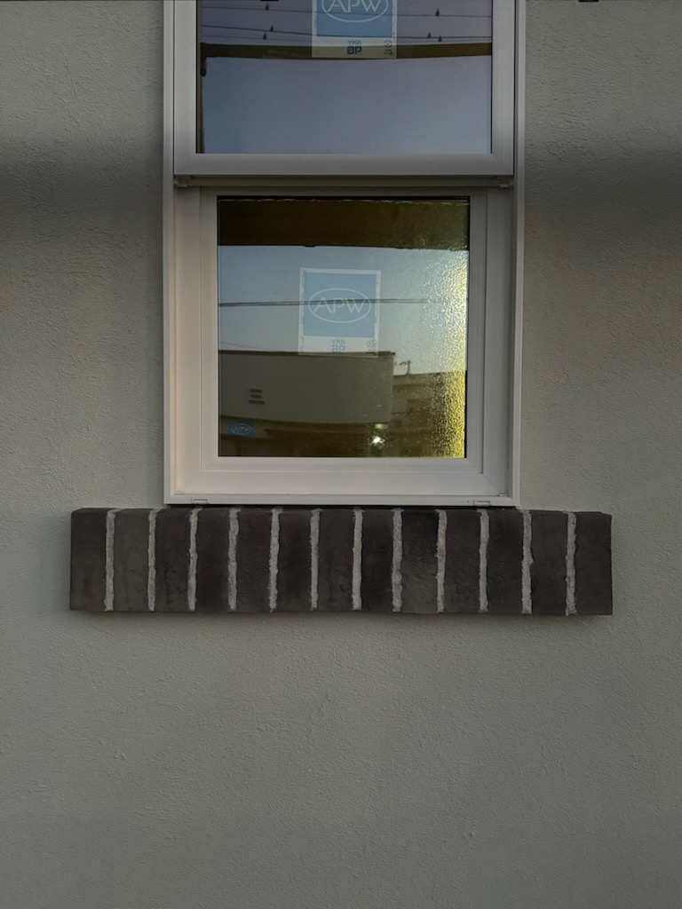 ちなみに…窓とレンガの間の隙間は、コーキング材を充填するのですが