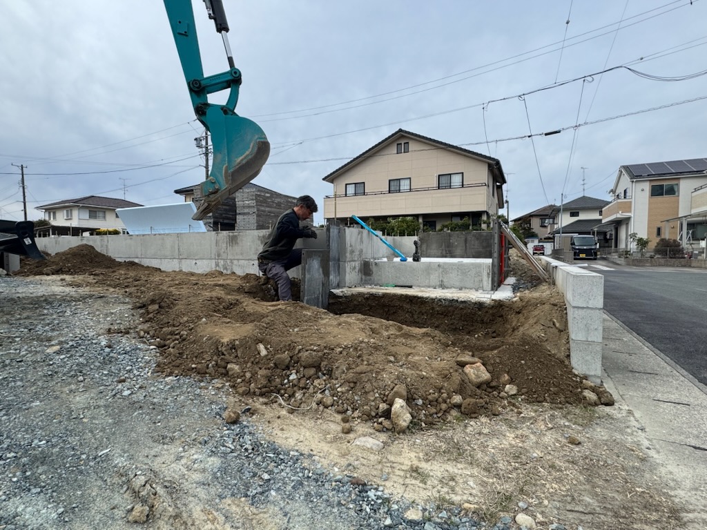 現在、基礎工事中の「カーブ階段のある大屋根スタイルの家」