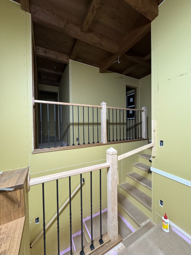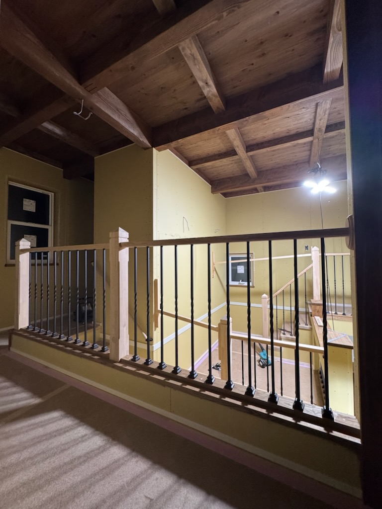 こちらは、2階廊下の木の親柱+アイアン小柱の手摺。