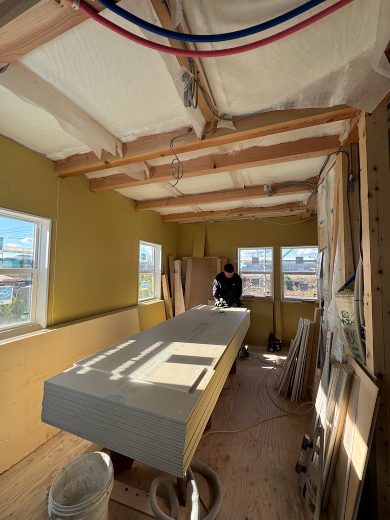 クロス工事も大事ですが、当然下地工事(石膏ボード張り)も大事な作業の1つ。