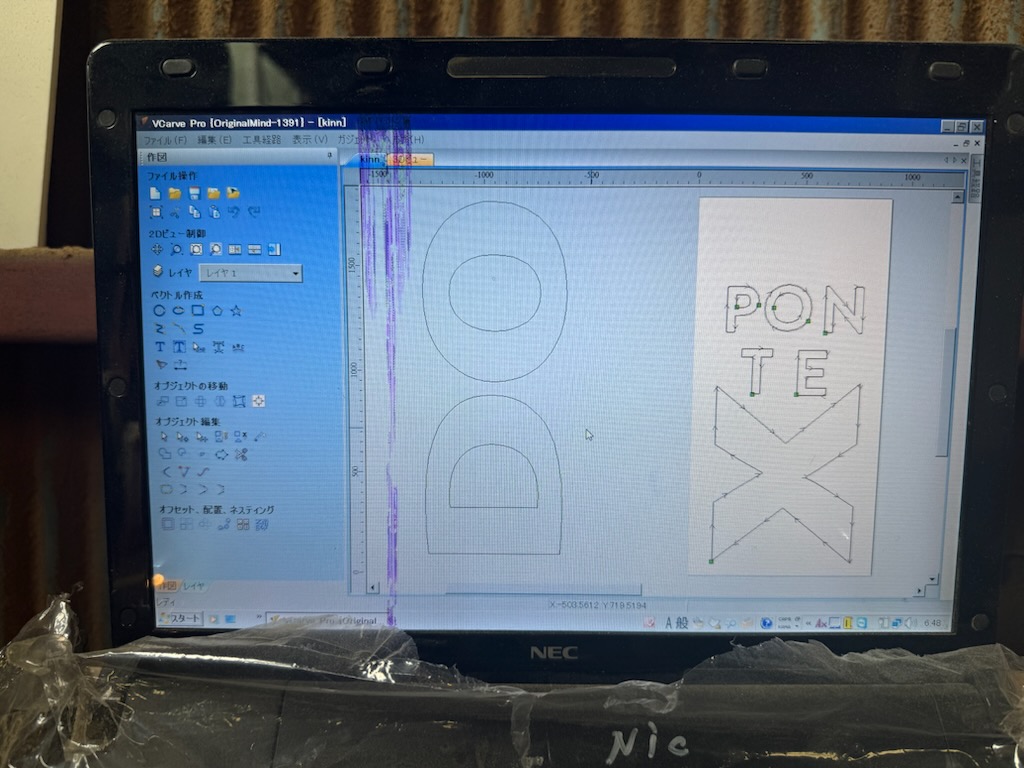 こんな感じでPCに文字を打ち込んで、機械と連携させて