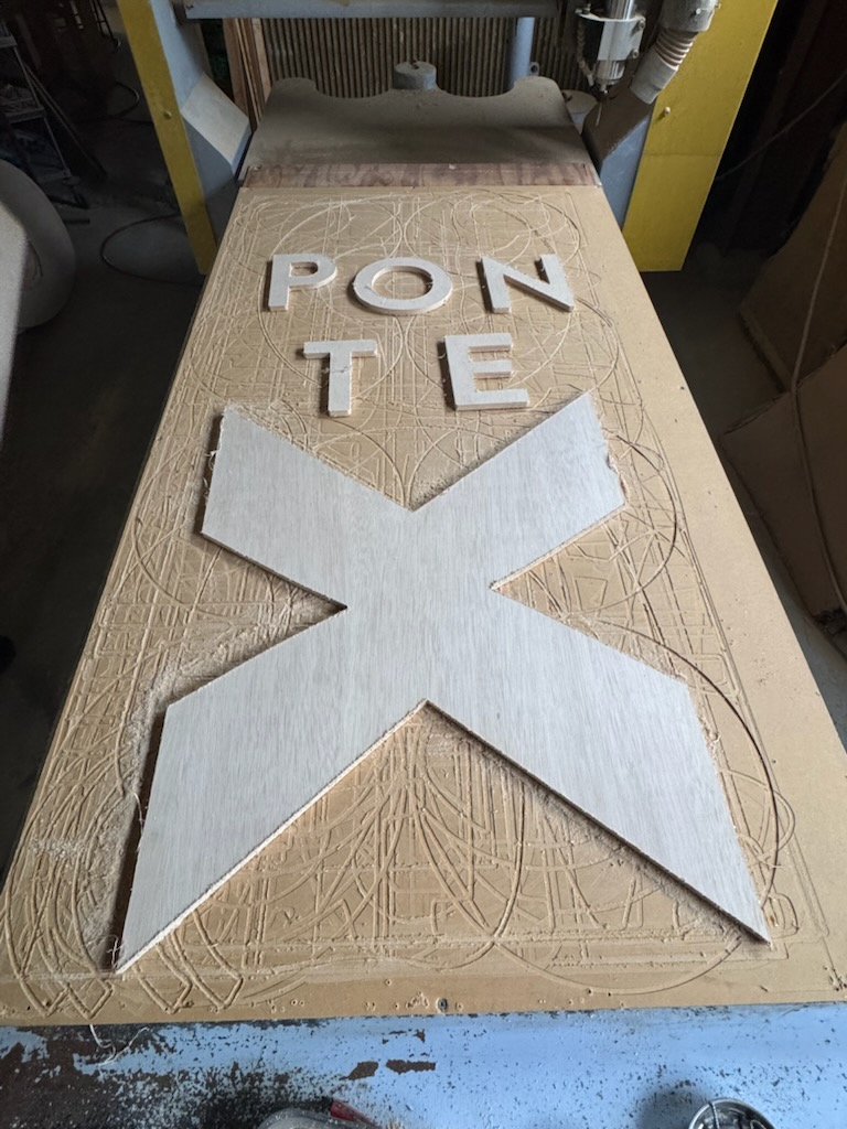 場所は、材木屋さんの作業場を借りて、塗装しているんですよ!