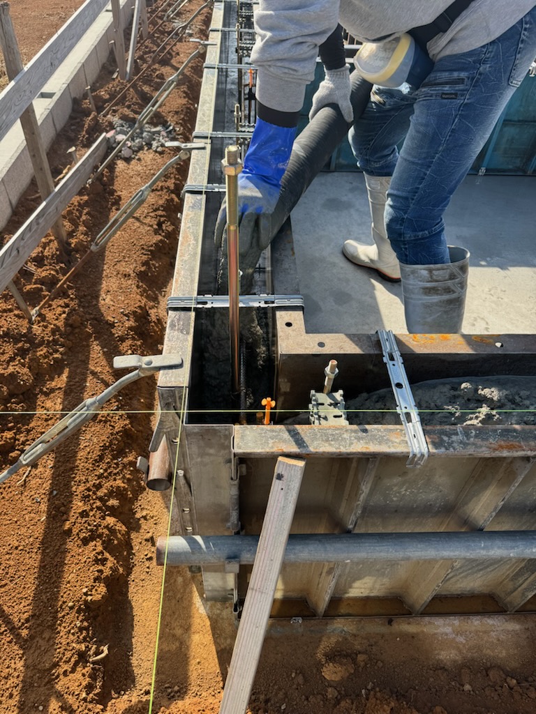別々に打設するため、2度コンクリートを打設します。