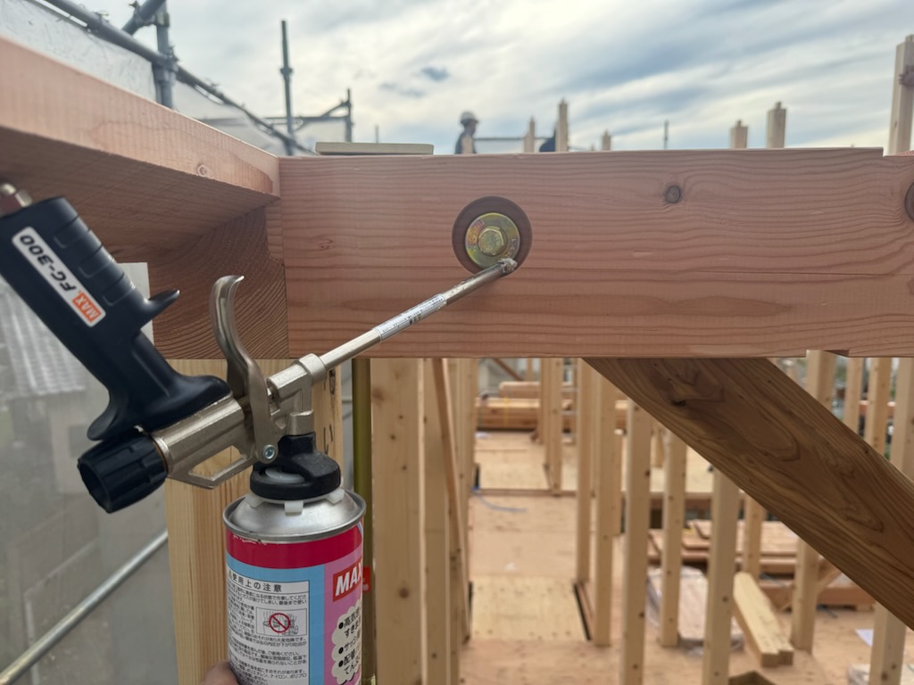 室内側から羽子板ボルトに向けて、ウレタンを吹き付ける方法もありますが…