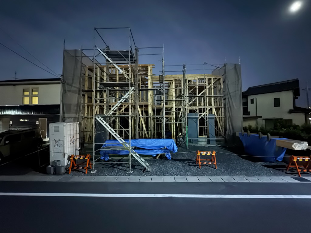 こちらは、ペールローズの上棟初日が終わった状態。