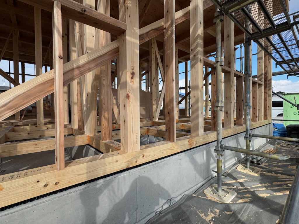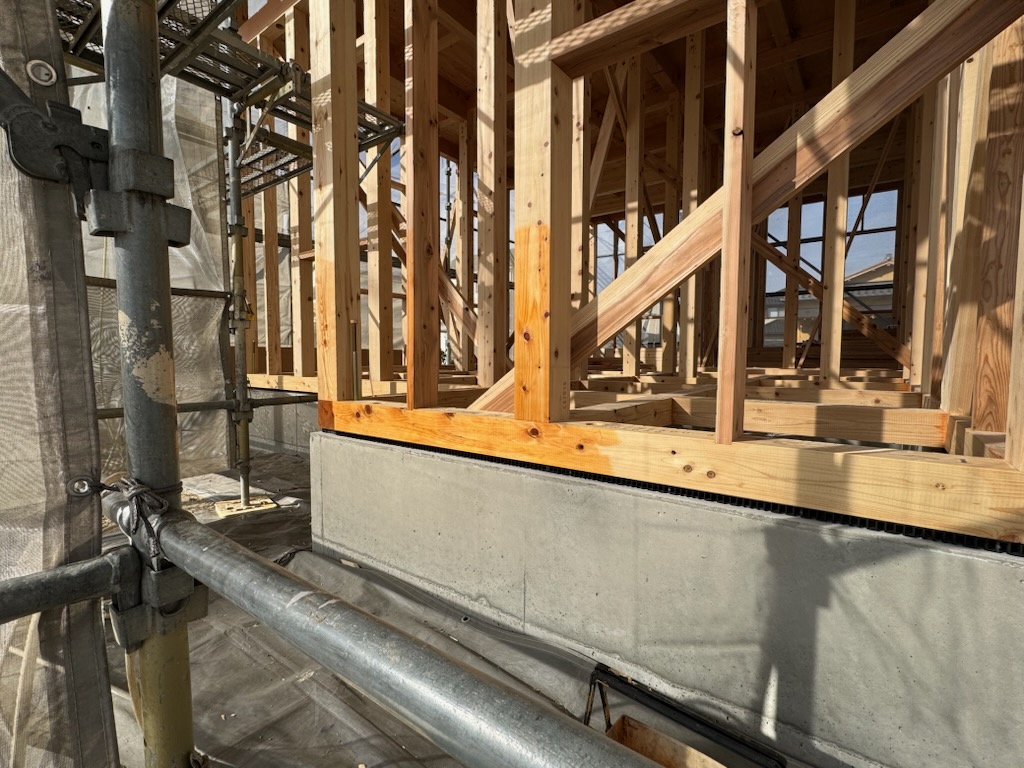 土台の上に柱や間柱と呼ばれる部材が組まれていまして