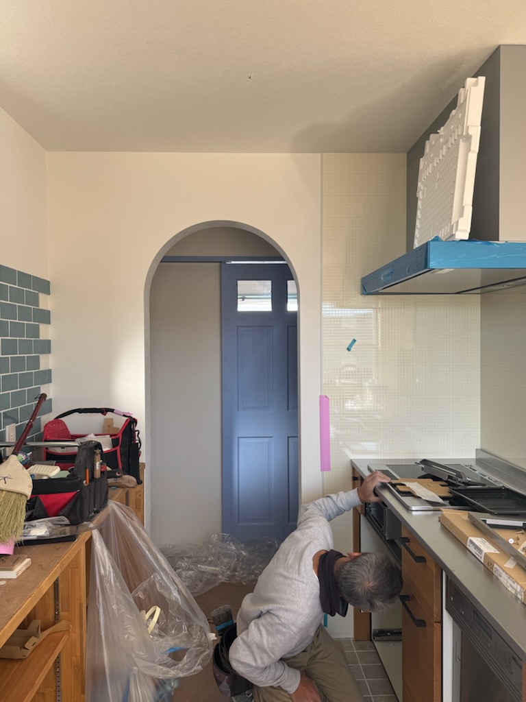 キッチン背面のタイルの数量が足りなかったみたいで…歯抜け状態ですがw