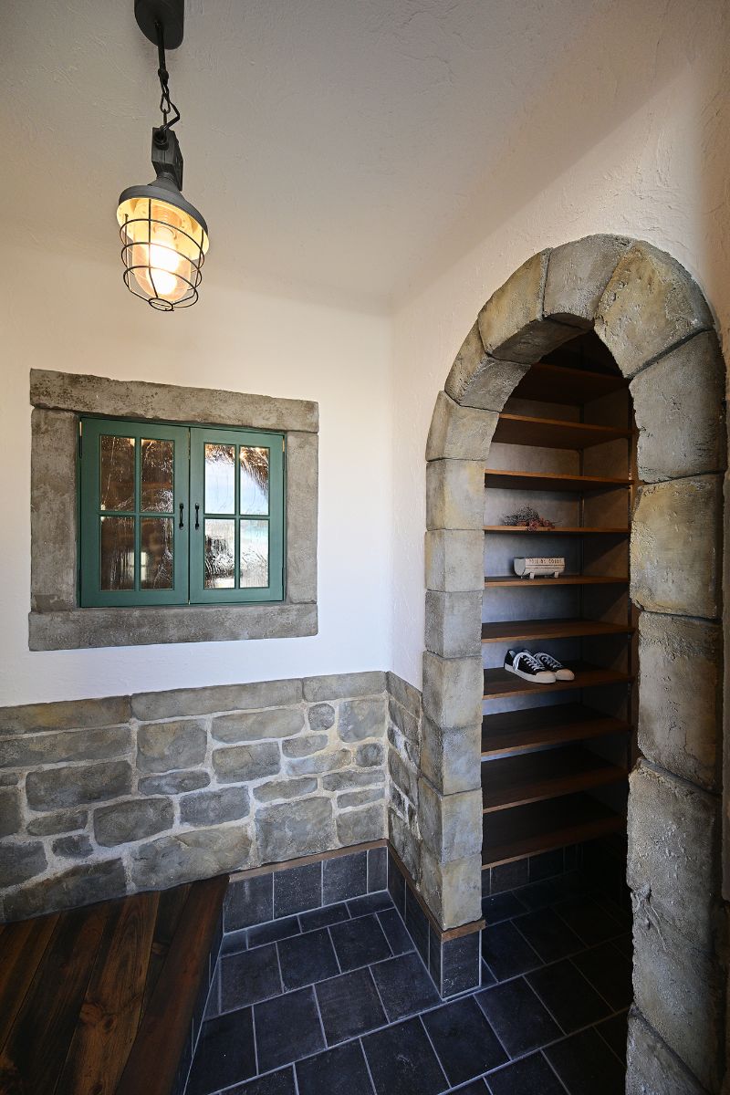 テーマパークの建物でも使われるモルタル造形やアンティーク加工を使った家で、決して夢から覚めることのない、非日常な毎日を手に入れて。