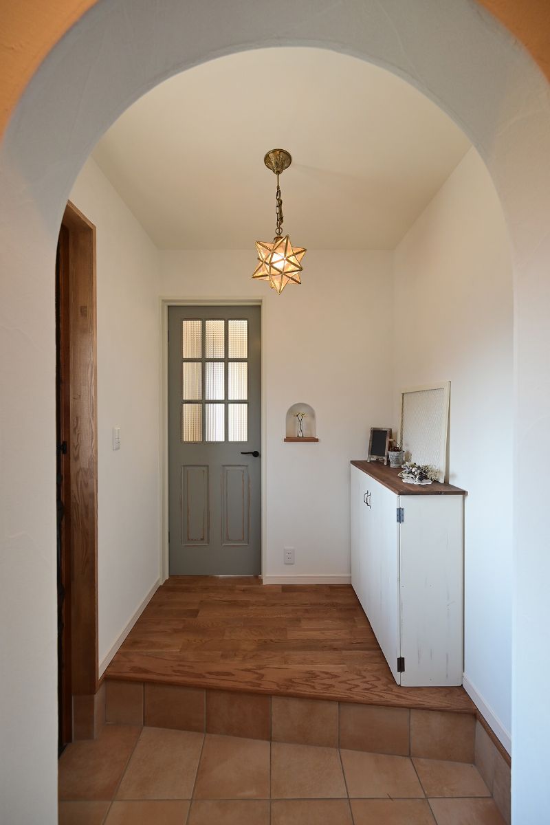 扉を開けると、アーチ型のエントランスにカラードアがお出迎え。